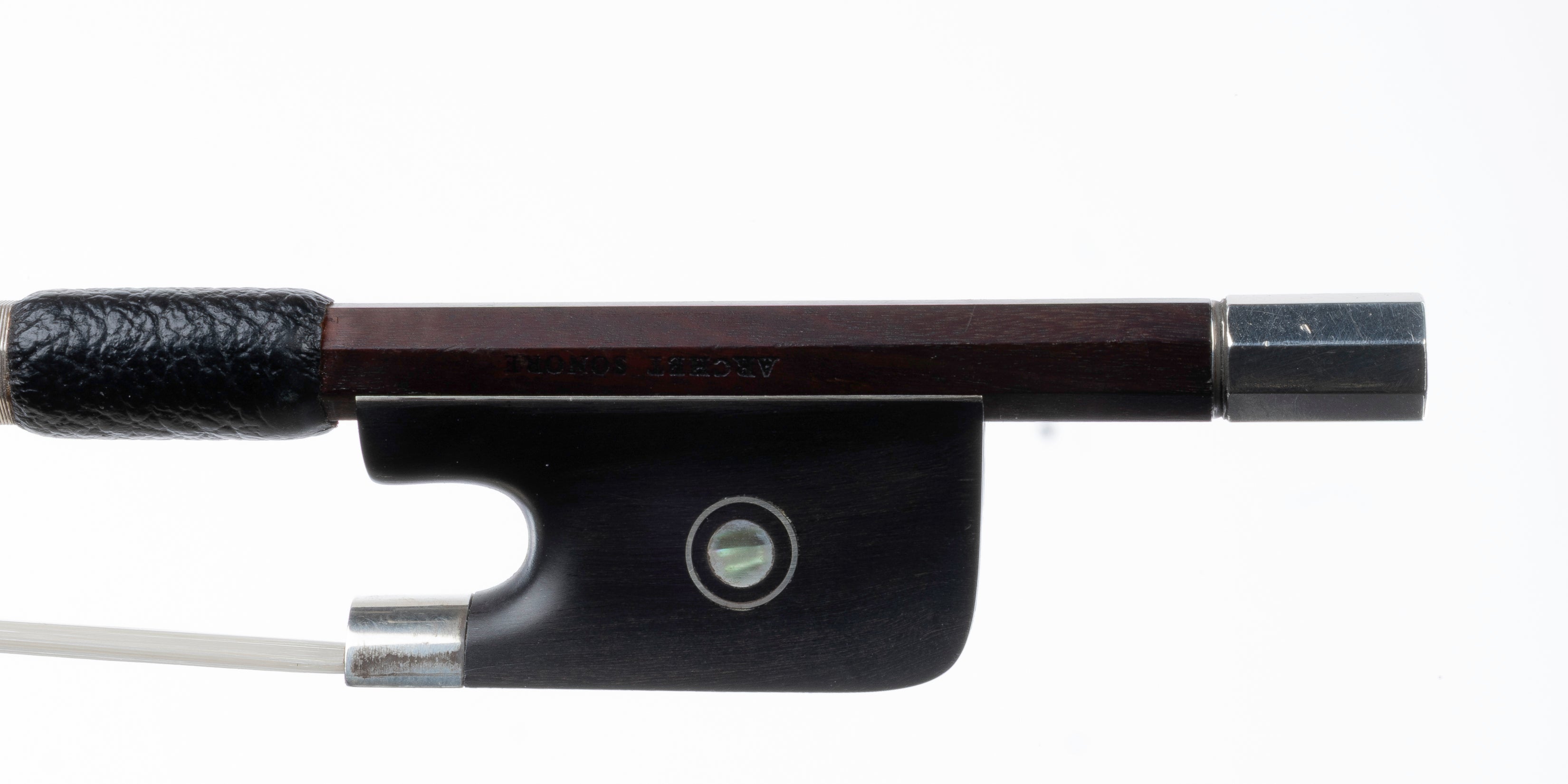 Archet is a Japanese bow making workshop which produces fine violin, viola, cello, and double bass bows, in the French bow making tradition, and modelled on master makers Tourte, Peccatte, and Sartory, of which this "Sonore" cello bow is a fine example.