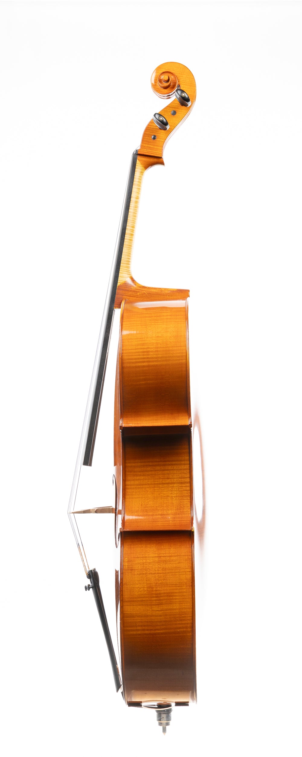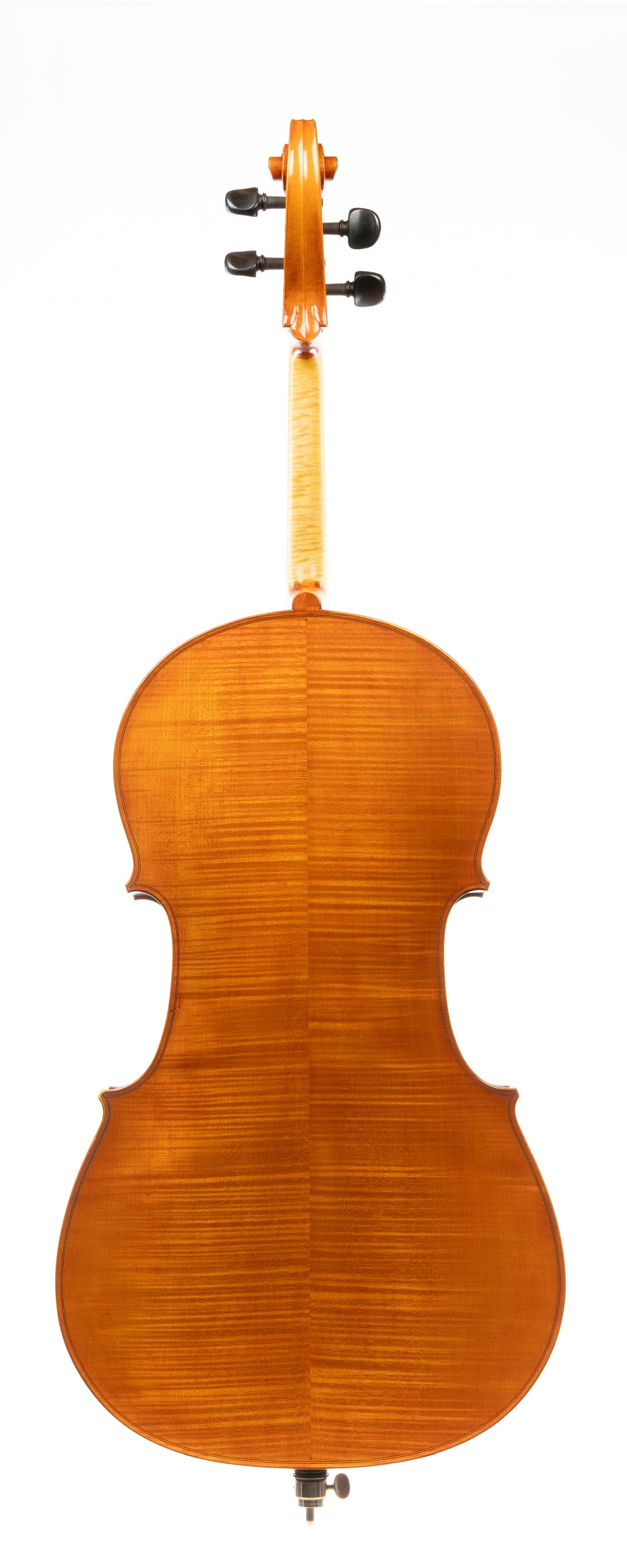 A prolific maker with an excellent eye and a steady hand, Malcolm Collins was actively making violins, violas and cellos up to his death in early 2025, at the age of 86. Like several other contemporary New Zealand luthiers, he received his initial training from seminal Hamilton maker, the late Ian Sweetman who passed on knowledge gained from time in Jacques Francais New York workshop as well as his own fertile experience. This is a relatively early cello – Malcolm’s output reached the mid thirties by 2022 – but he already had a clear idea of the rich, warm tone he wanted from his Montagnana model which this cello delivers.