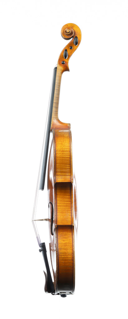 Louis Guersan was one of the more prominent and successful French Luthiers of the mid-late eighteenth century with a close association with the French royal family that might not have stood him in good stead if he had lived long enough to witness the French Revolution of 1789 onwards. This small-sale viola, with a back measurement of 15 ½ inches (395mm) has a surprisingly big tone given its size, with richness, warmth and definition on the lower strings, and a lovely range of tonal colours across the whole instrument, This will be a great viola for a serious player looking for something special and distancing without demanding any physical strain.