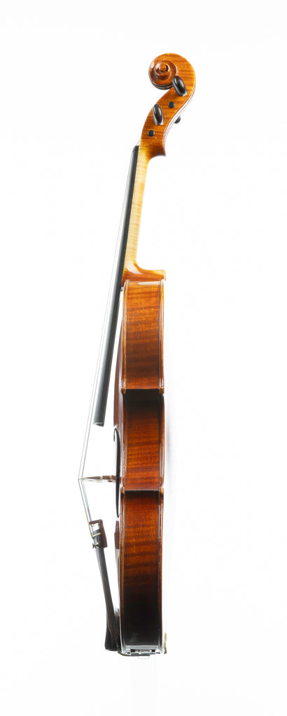 Made at the height of his instrument-making career, this fine viola by Ian Sweetman, modelled after Ian’s favourite maker Guarneri del Gesu, embodies all of his expertise to create an instrument with a lovely tonal range, from tis gutsy lower registers to a warm, clear A string, that doesn’t fail to please. Ian’s fascination with tone production extended to his bridges; this one bears his handwritten measurements, recording his final adjustments in the search for the best sound and playability