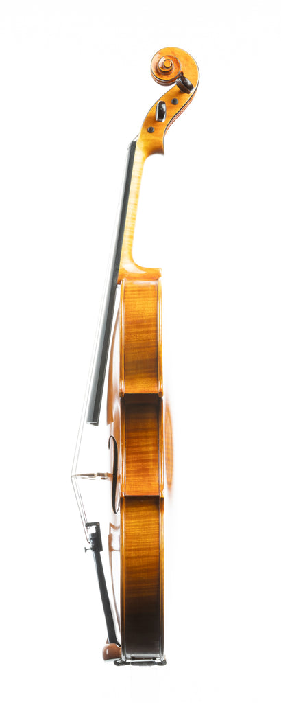 This lovely viola was made by one of New Zealand’s most skilled and highly-regarded violin makers, Ian Sweetman using a relatively full-arched Guarneri del Gesu model. An attractively flamed, one-piece back is enhanced by Ian’s signature varnish handmade from fossil kauri copal. The tone is clear, warm, and resonant across all registers, with a nobility of character, that is very appealing. With a back length of 168 (512mm) and a relatively short string length of 353 mm, this instrument will make a very good choice for a discerning musician wanting a rich tone and good playability.