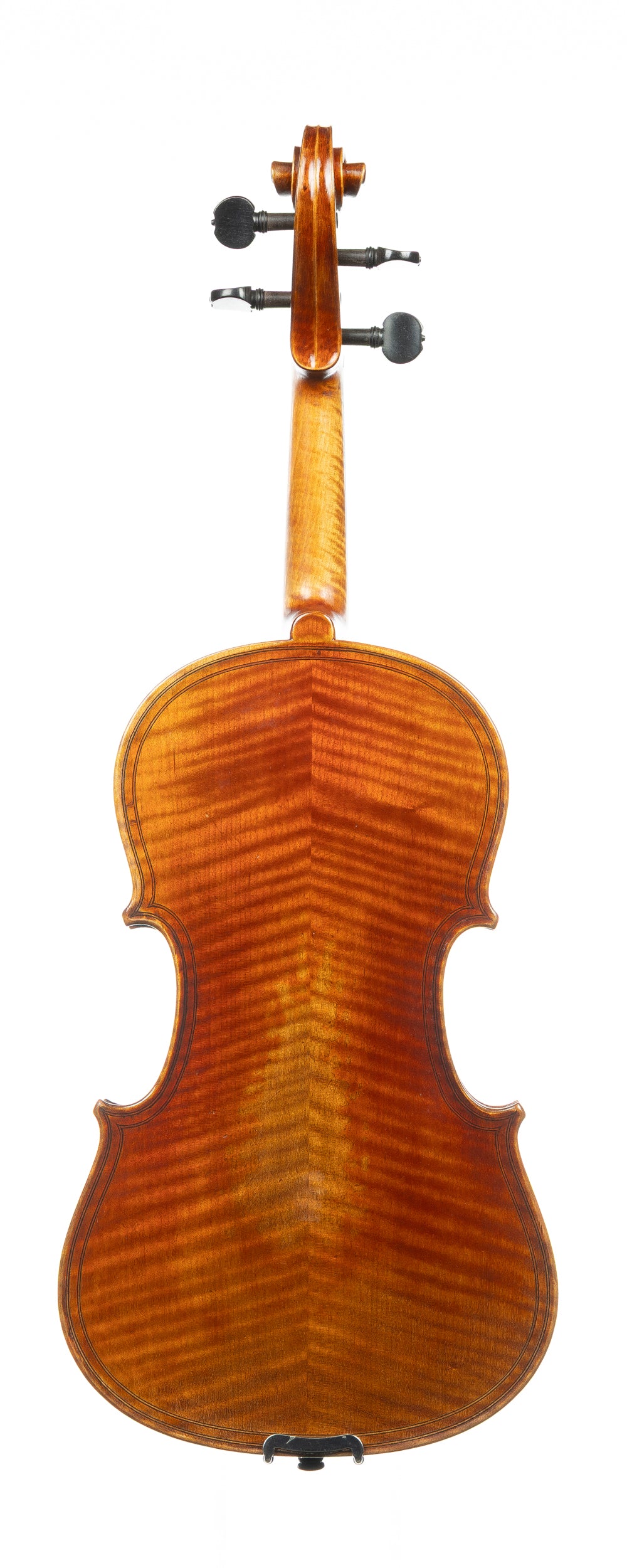 Jay Haide instruments continue to impress us, particularly for the tonal qualities and playability offered by their “L’ancienne” range. This example, modelled after the work of Paolo Maggini, one of the earliest viola makers, captures both the style and the tone colours of this famous Brescian Luthier, with a woody, reedy character balanced with warmth and clarity. The long, pointed ‘f’ holes point the way to an even more famous maker, the labeled Guarneri del Gesu, while the doubled purfling adds historical charm. The viola will make an excellent choice for a younger player looking to move from violin to explore the warmth and intimacy of the middle parts or for a well-versed amateur player looking for that bit extra.