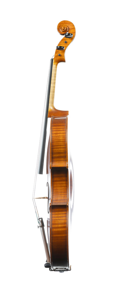 Specialist viola maker Anthony Elmsly completed this fine example of his work in 2016. With a body length of 41.3cm (41.6 over the arch) this is a classic and very manageable instrument, with the design based on some of the most successful alto-sized models in history, the much copied “Conte Vitale” and “Primrose” violas by Andrea Guarneri. The oil-based varnish is a warm brown colour and the tone is strong and even across its whole range.