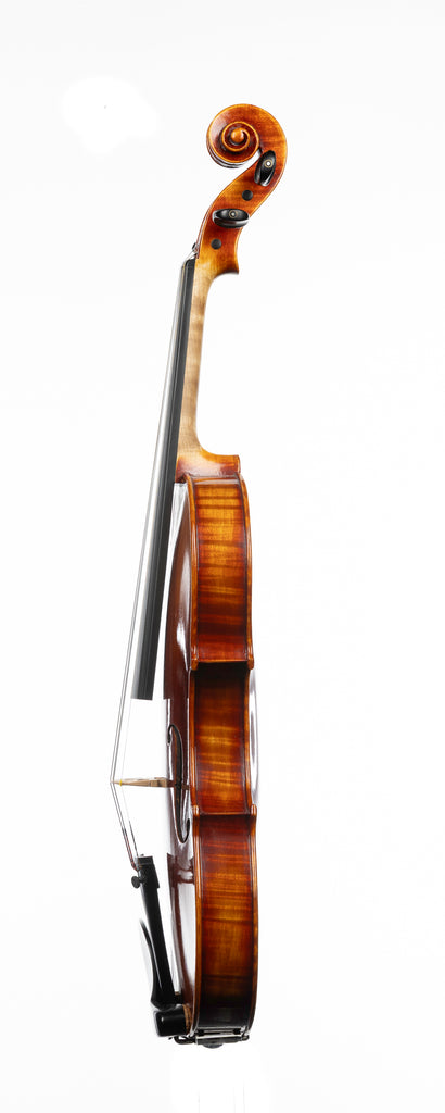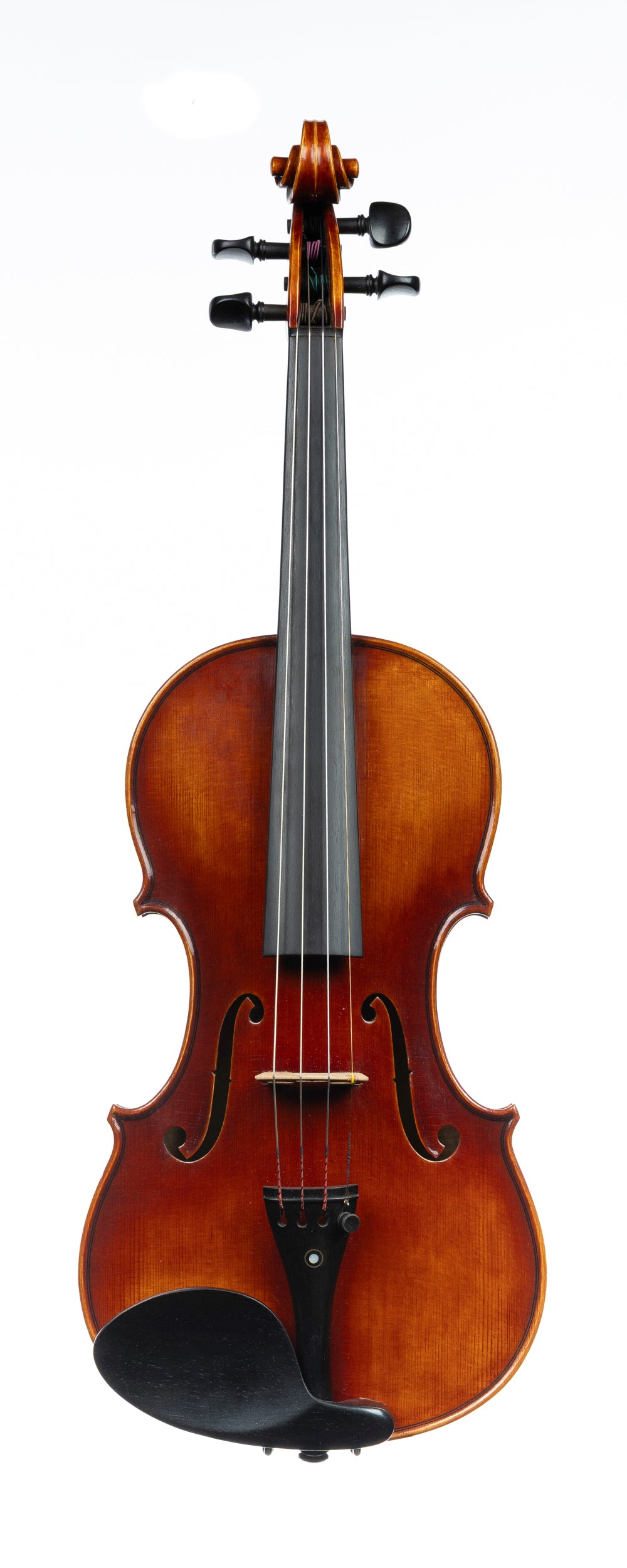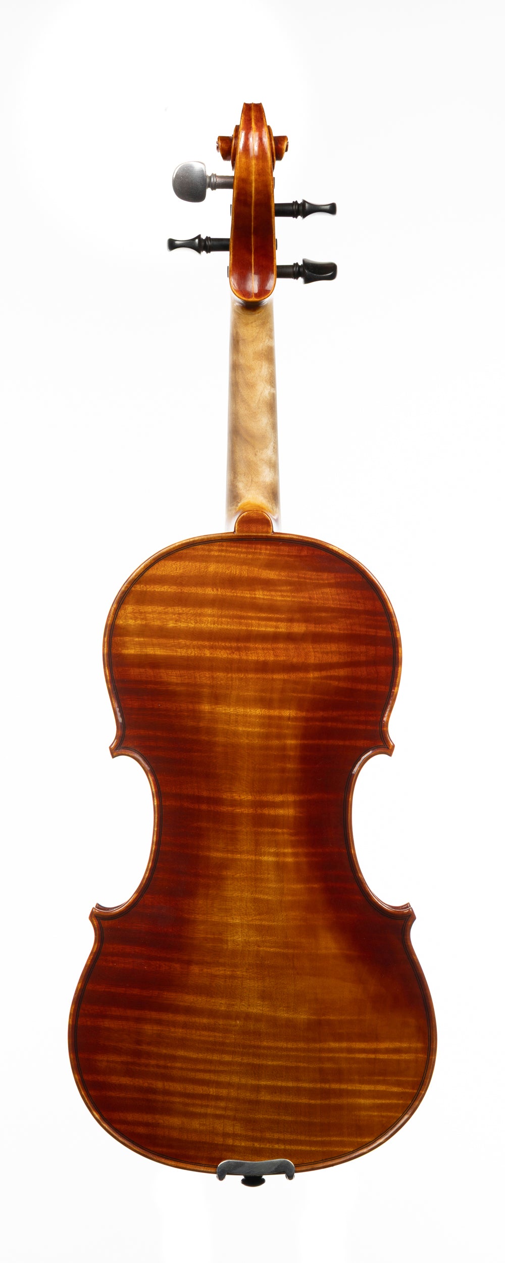 Highly experienced German-born violin maker Annette Voll trained at the world-renowned violin making school in Mittenwald. After graduating in 1994, she expanded her knowledge and skill in workshops in the Netherlands and New Zealand, gaining her German Master’s Certificate in 2002, before establishing her own workshop in 2010 here in Auckland. This beautiful violin is modelled on the “Ysaye” violin by Guarneri del Gesu. The tone is powerful, rich and dynamic, with a full-bodied brilliance and a strong core. Although new, it responds instantly and openly.